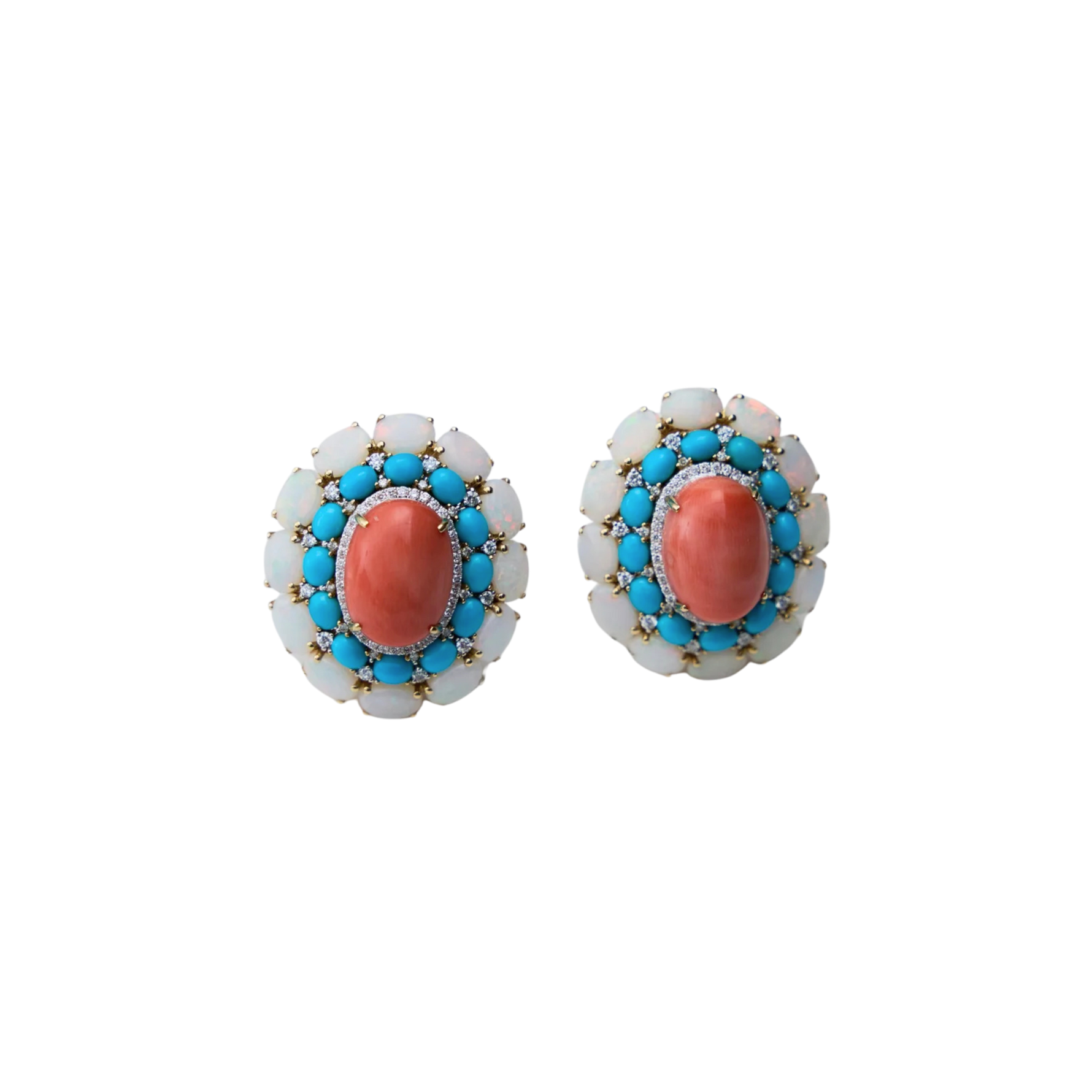 Unit price per2.45ct Coral | 0.69ct Turquoise | 6.34ct Opal | 0.7ct Natural Diamonds | 18k Yellow Gold