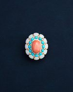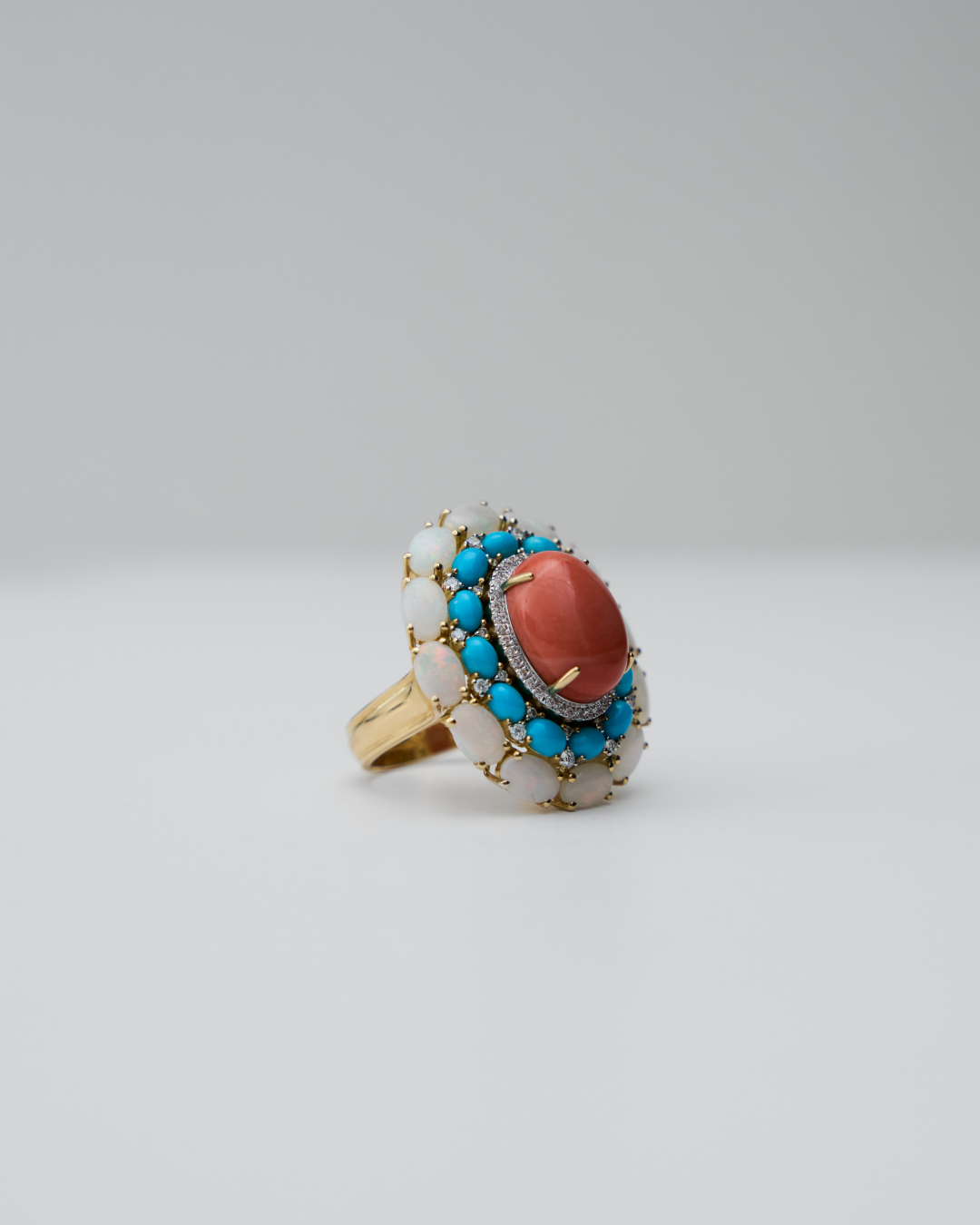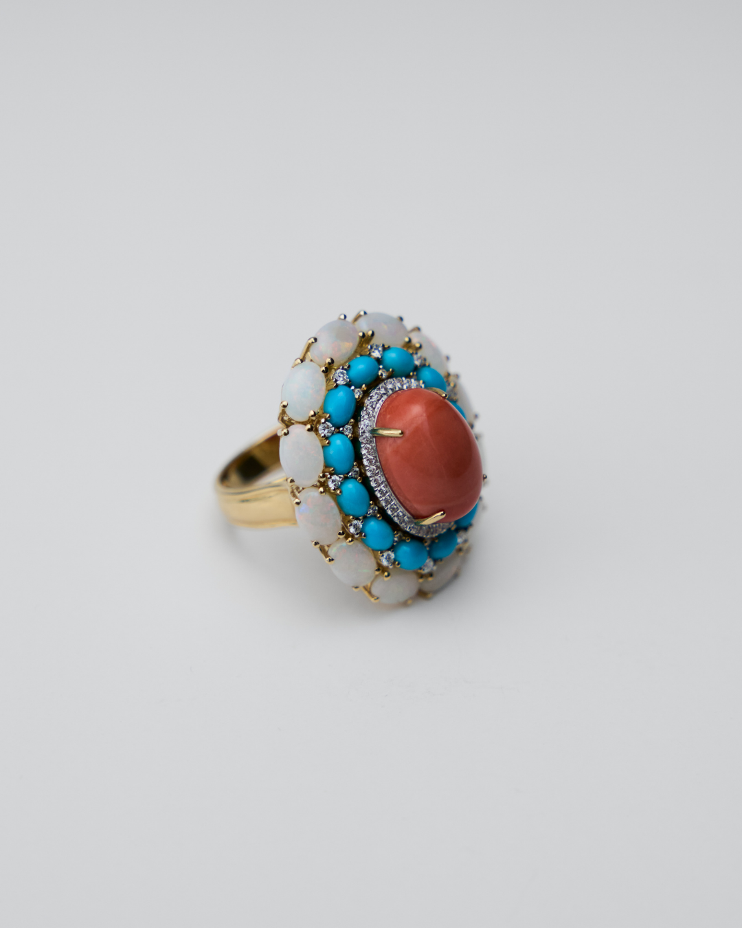 1.28ct Coral | 0.43ct Turquoise | 3.22ct Opal | 0.38ct Natural Diamonds | 18k Yellow Gold