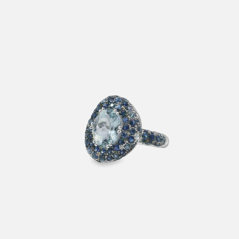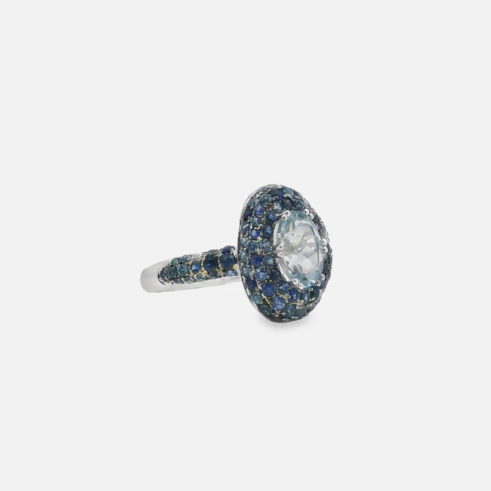 1.82ct Aquamarine | 1.93ct Blue Sapphires | 14k White Gold