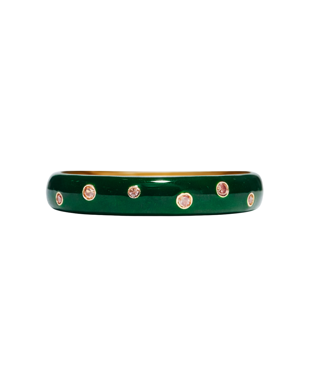 Green Enamel | 14k Yellow Gold | 0.15ct Brown Sapphire